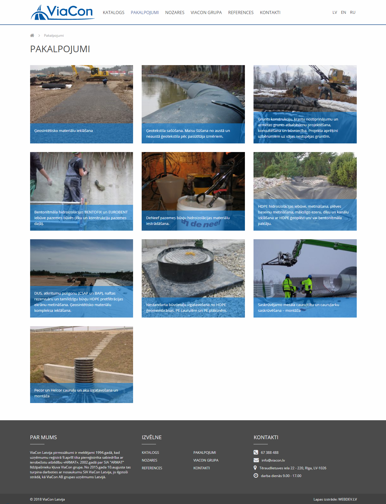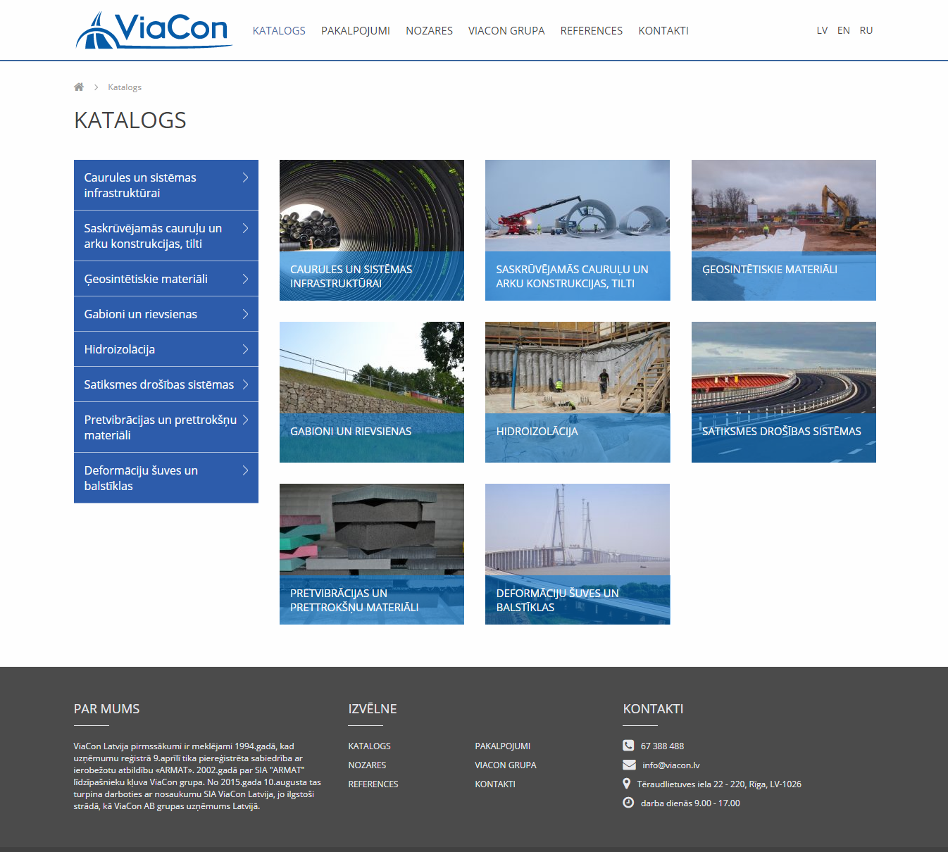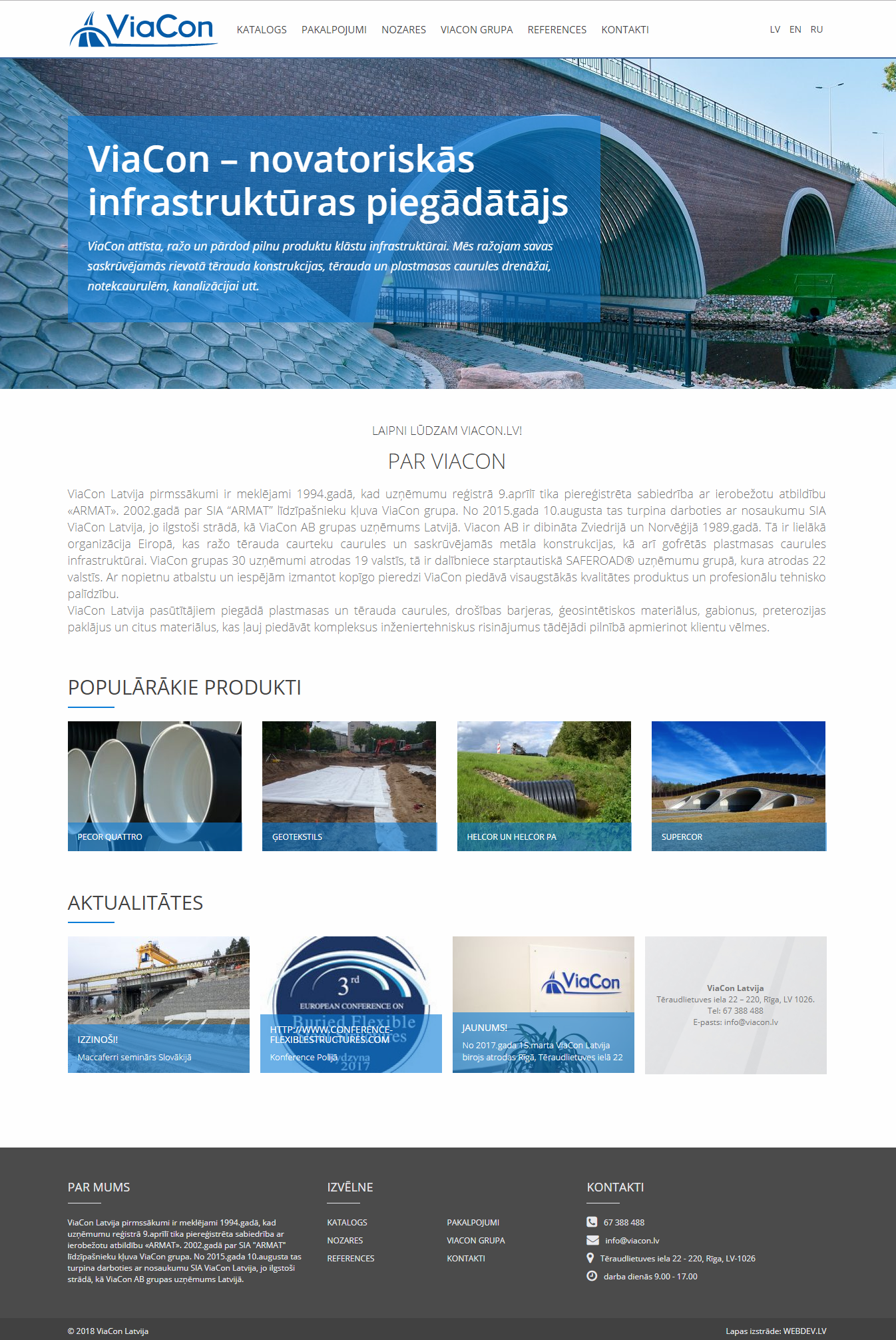 ViaCon attīsta, ražo un pārdod pilnu produktu klāstu infrastruktūrai. Mēs ražojam savas saskrūvējamās rievotā tērauda konstrukcijas, tērauda un plastmasas caurules drenāžai, notekcaurulēm, kanalizācijai utt. Mēs tirgojam pilnu ģeosintētisko materiālu klāstu; ģeotekstilu, ģeorežģus, ģeomembrānas un citus produktus infrastruktūras projektiem.
